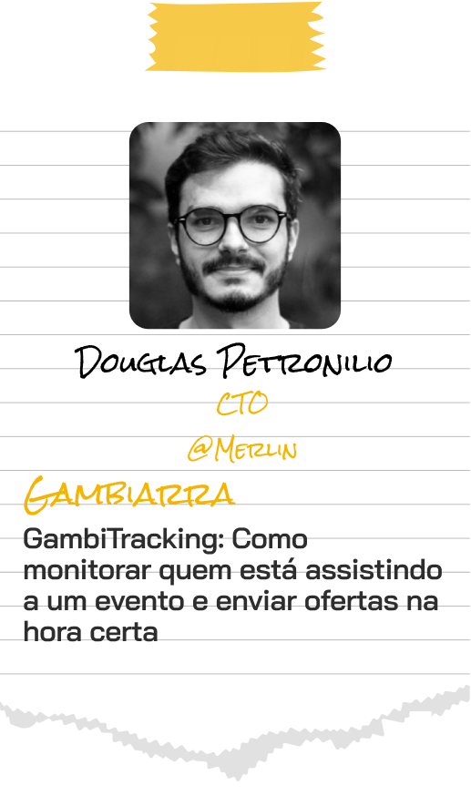 | 14:45 | Gambiarra | Douglas Petronilio | GambiTracking: Como monitorar quem está assistindo a um evento e enviar ofertas na hora certa |