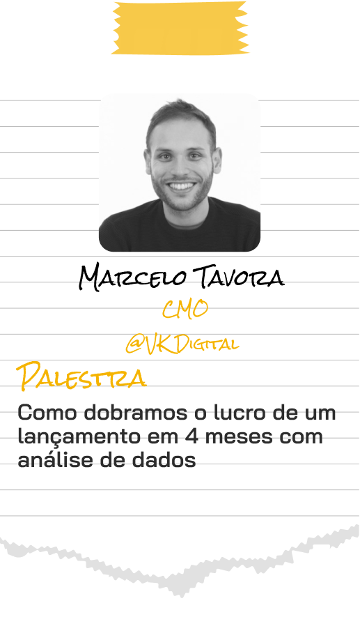 | 09:00 | Palestra | Marcelo Távora | Como dobramos o lucro de um lançamento em 4 meses com análise de dados |
