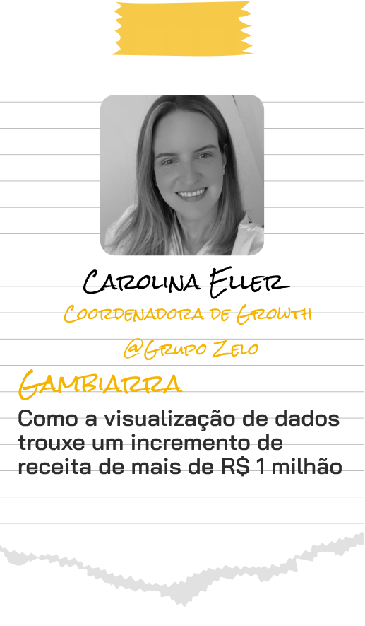 | 11:05 | Gambiarra | Carolina Eller | Como a visualização de dados trouxe um incremento de receita de mais de R$ 1 milhão |