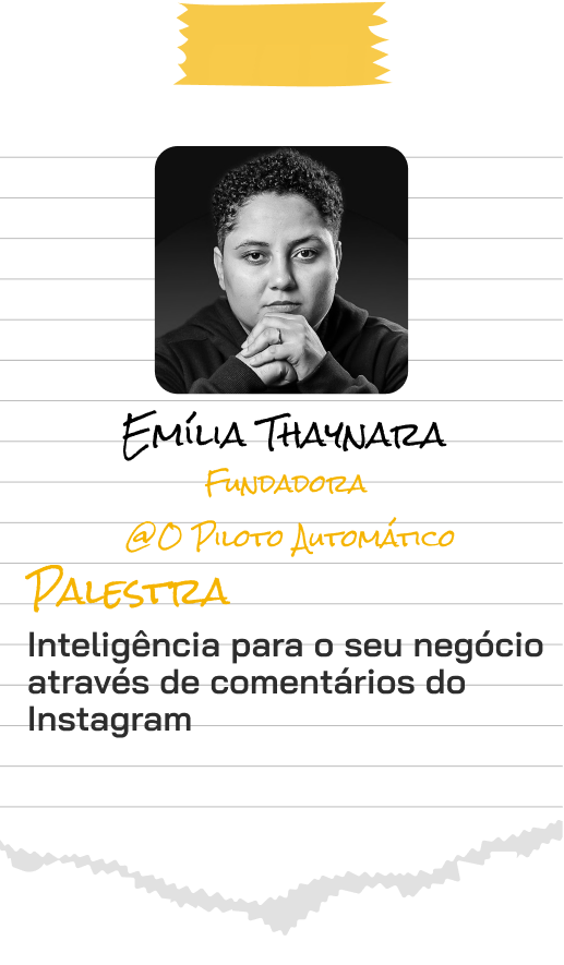 | 10:20 | Gambiarra | Emília Thaynara | Usando I.A. em comentários do Instagram para obter mais inteligência para sua empresa |