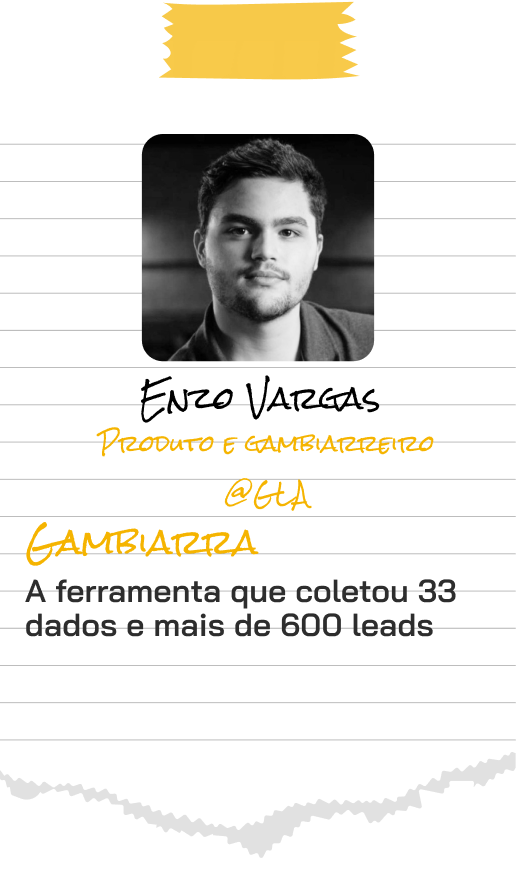 | 13:10 | Gambiarra | Enzo Vargas | A ferramenta que coletou 33 parâmetros a mais dos leads gerados |