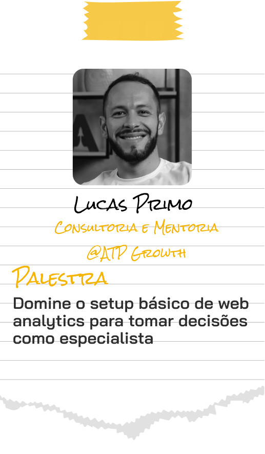 | 15:30 | Palestra | Lucas Primo | O terror dos números: Como dominar o setup de web analytics para tomar decisões como um especialista |