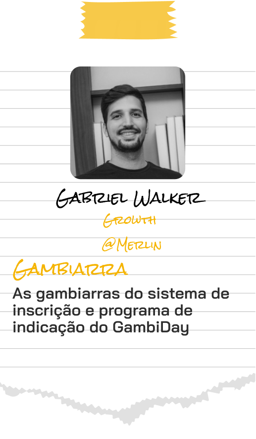 | 10:30 | Gambiarra | Gabriel Walker | A ferramenta que trouxe mais da metade dos leads captados via indicação |